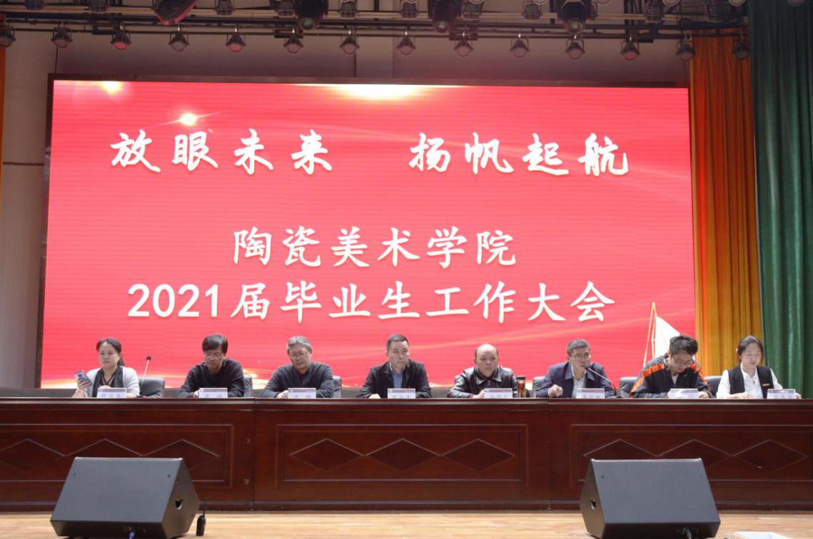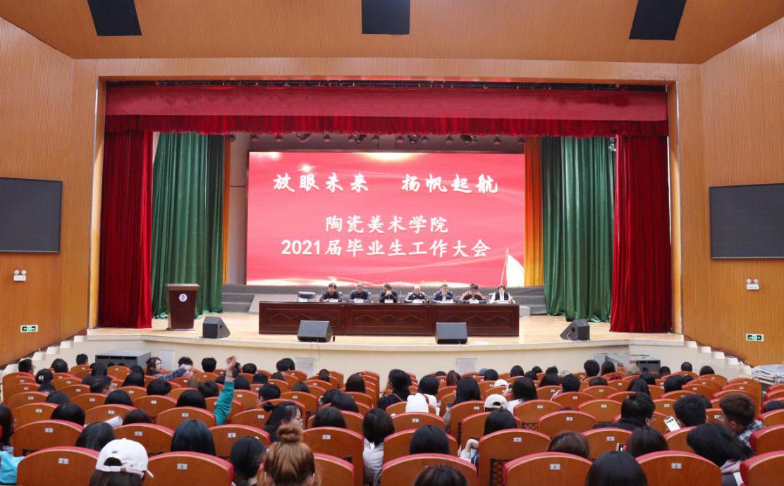 为进一步帮助毕业生顺利完成学业、主动就业创业,推动2021届毕业生相关工作顺利开展,10月28日下午,陶瓷美术学院在我校简一学生活动中心召开“放眼未来 扬帆起航”2021届毕业生工作大会。景德镇陶瓷大学副校长吕金泉、学院全体班子成员出席会议。相关科室负责人、教研室主任、毕业班班主任以及2021届全体毕业生500余人参加本次会议。大会由陶瓷美术学院党委副书记李毅坚主持。
