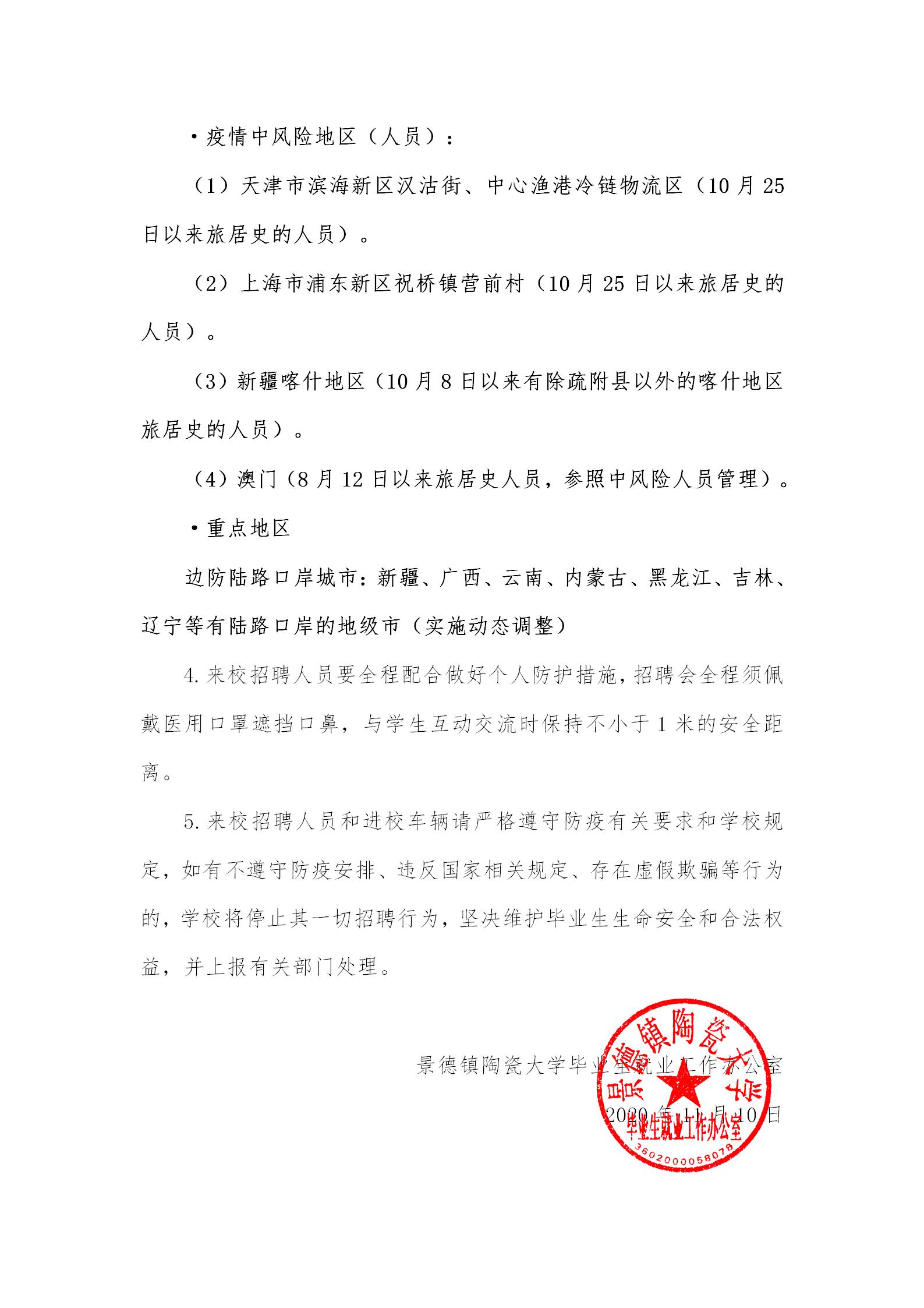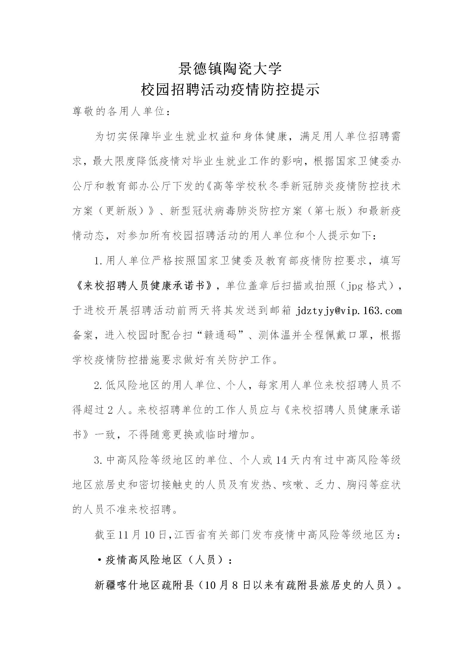 景德镇陶瓷大学校园招聘活动疫情防控提示(一)