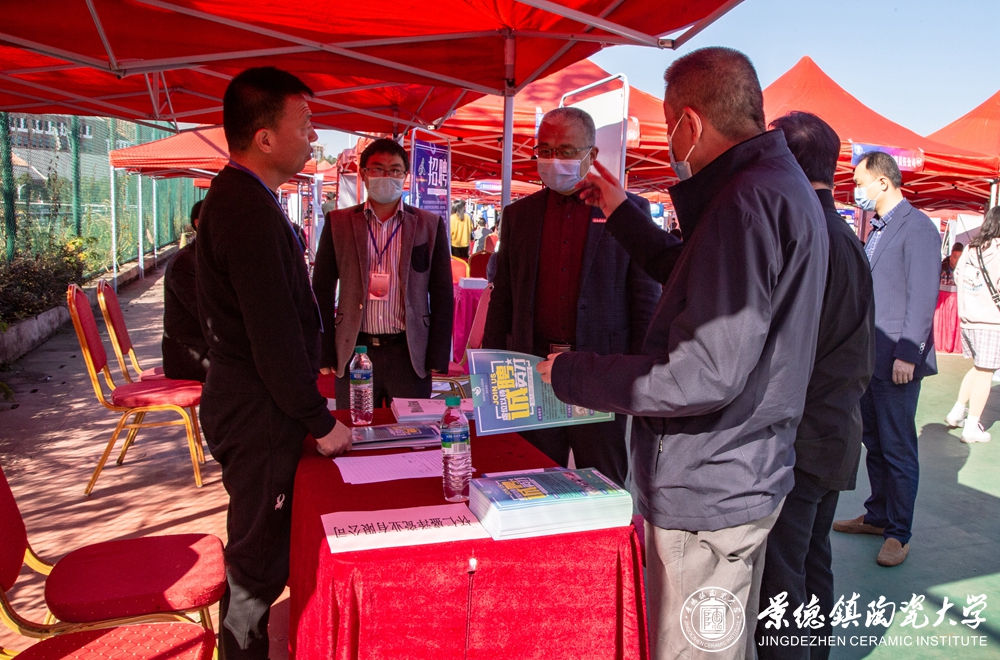11月14日上午,由省教育厅主办,省高等院校毕业生就业工作办公室、省高等院校毕业生就业指导服务中心、景德镇陶瓷大学承办的江西省2021届高校毕业生陶瓷类专场招聘会暨景德镇陶瓷大学2021届毕业生就业洽谈会在我校湘湖校区举办。我校副校长冯浩、省高等院校毕业生就业工作办公室相关负责人王为民深入招聘会现场查看、指导工作,并与用人单位和应聘毕业生亲切进行了交谈。景德镇地区各高校就业负责人、我校各学院(系、部)就业工作有关负责人,以及毕业生班主任到场了解用人单位的需求,积极推荐毕业生,指导毕业生与用人单位应聘签约,进行校企合作洽谈。